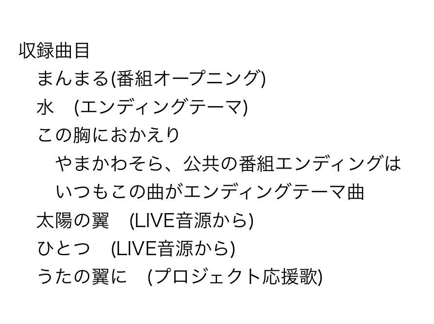 番組のオープニング、エンディングテーマ曲、うたの翼プロジェクトのテーマ曲など、LIVE音源や番組公開収録音源など他では聴くことが難しいものも含めた番組オリジナルセレクションです。事務手数料を差し引いて全額、うたの翼プロジェクトへ投入いたします!ふるさと納税の返礼品みたいなイメージです。応援よろしくお願いいたします!
